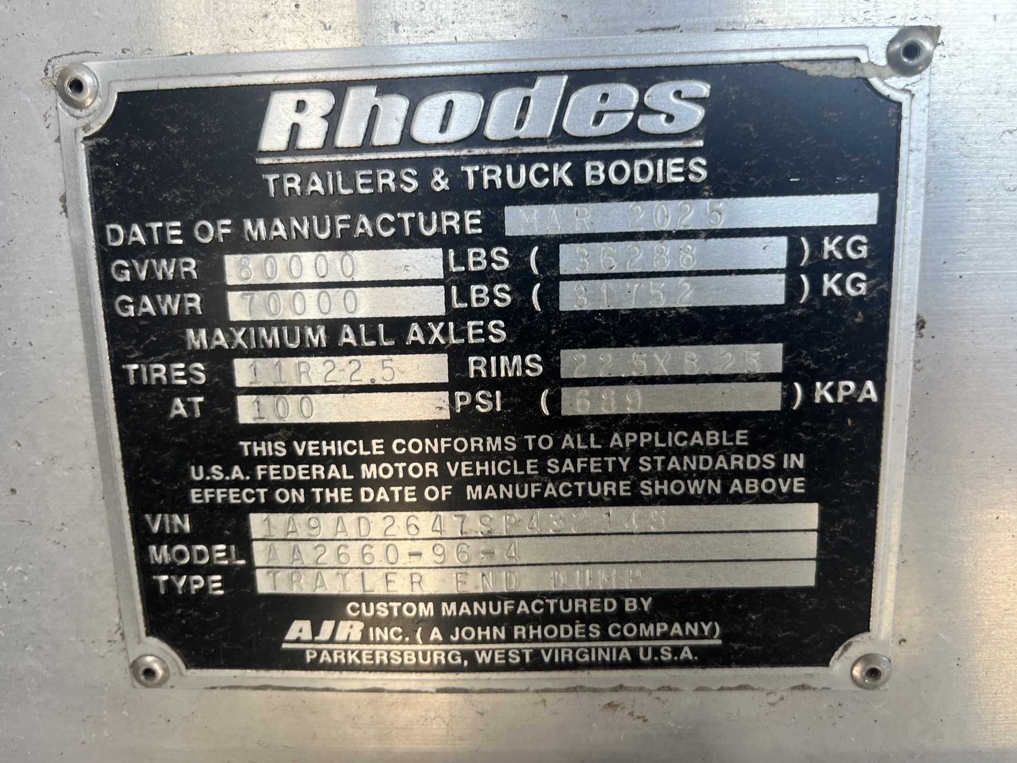 Price Reduced! Rhodes End Dump Trailer 26ftx60in All Alum Conventional Side Quad Axle Air Ride